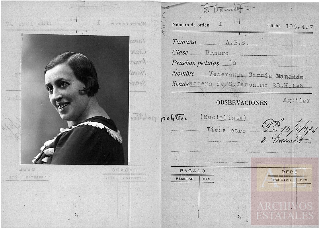 Foto de Veneranda: carnet del Congreso de los Diputados de las Cortes Generales, Madrid, 1933